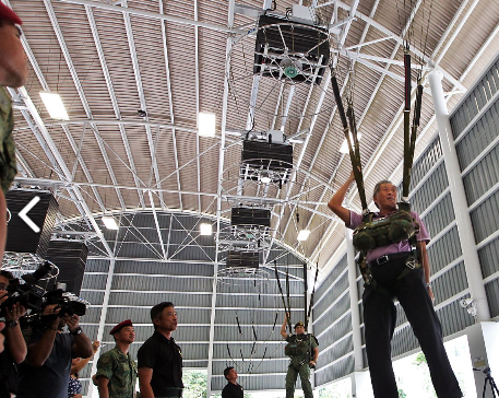 Singapore with a tiny land area of 704 sq km is massively handicapped in providing good training facilities for its Armed Forces. This inherent disadvantage has compelled it to be innovative in the application of technology to optimise the use of this scarce resource. The development of the world’s first Mechanised Parachute Training System is a practical innovation to meet the demands for commandos to undergo intensive simulated training in basic responses and drills encountered during a parachute descend. This is a prerequisite before they go for their first real parachute jump.